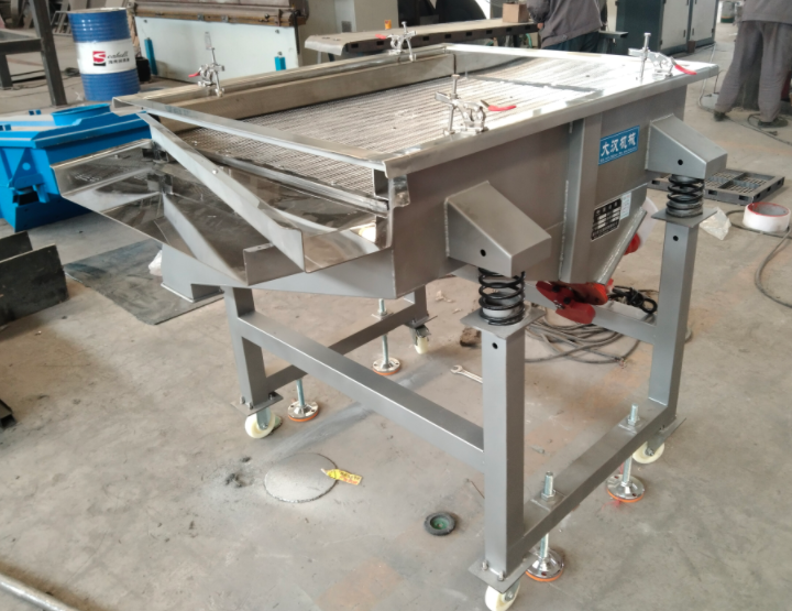 6、设备在停机时产生瞬间的共振区,此时振幅和噪声会明显增大,属正常现象,设备在开停机前,不锈钢直线筛筛面上不得有存留物料,筛网需经常检查是否张紧、破损,如有破损要即时更换。