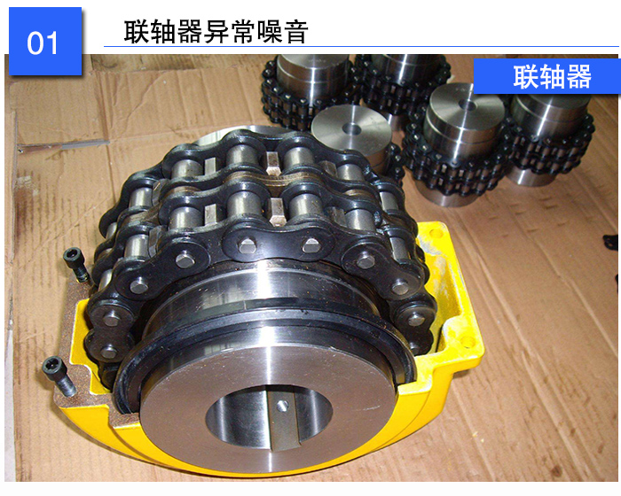 联轴器处发出的异常噪音,有时还伴有与电机转动频率相同的振动噪音。发生该故障的主要原因是由联轴器前后两轴不同心所引起的。