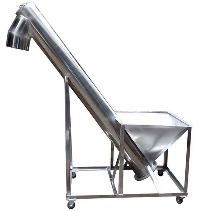 倾斜粉末螺旋输送机的输送能力随角度增加而下降,可倾斜的角度不大于45°,如果想垂直输送,需要大功率的电机。该设备不适合输送粒径太细的粉末,因为粉末在倾斜时更容易回流。可以和包装机、料仓等搭配使用,以组成流水线。